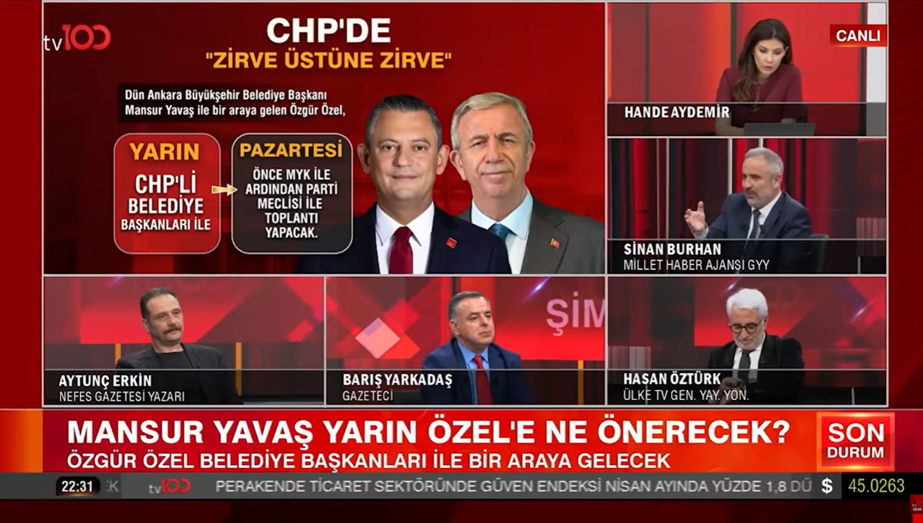 TV100 ekranlarında yayınlanan tartışma programında siyaset gündemini hareketlendiren bir polemik yaşandı. Eski CHP milletvekili Barış Yarkadaş ile gazeteci Sinan Burhan arasında “FETÖ” tartışması dikkat çekti.Canlı yayında konuşan Yarkadaş, Gürsel Tekin’in FETÖ tarafından hedef alındığını öne sürdü. Bu iddiaya yanıt veren Sinan Burhan ise Yarkadaş’a geçmişteki tutumları üzerinden yüklendi. Burhan, “Madem FETÖ’nün bir terör örgütü olduğunu her zaman gördünüz, iktidar FETÖ ile mücadele ederken neden Zaman Gazetesi önüne gittiniz?” sorusunu yöneltti.