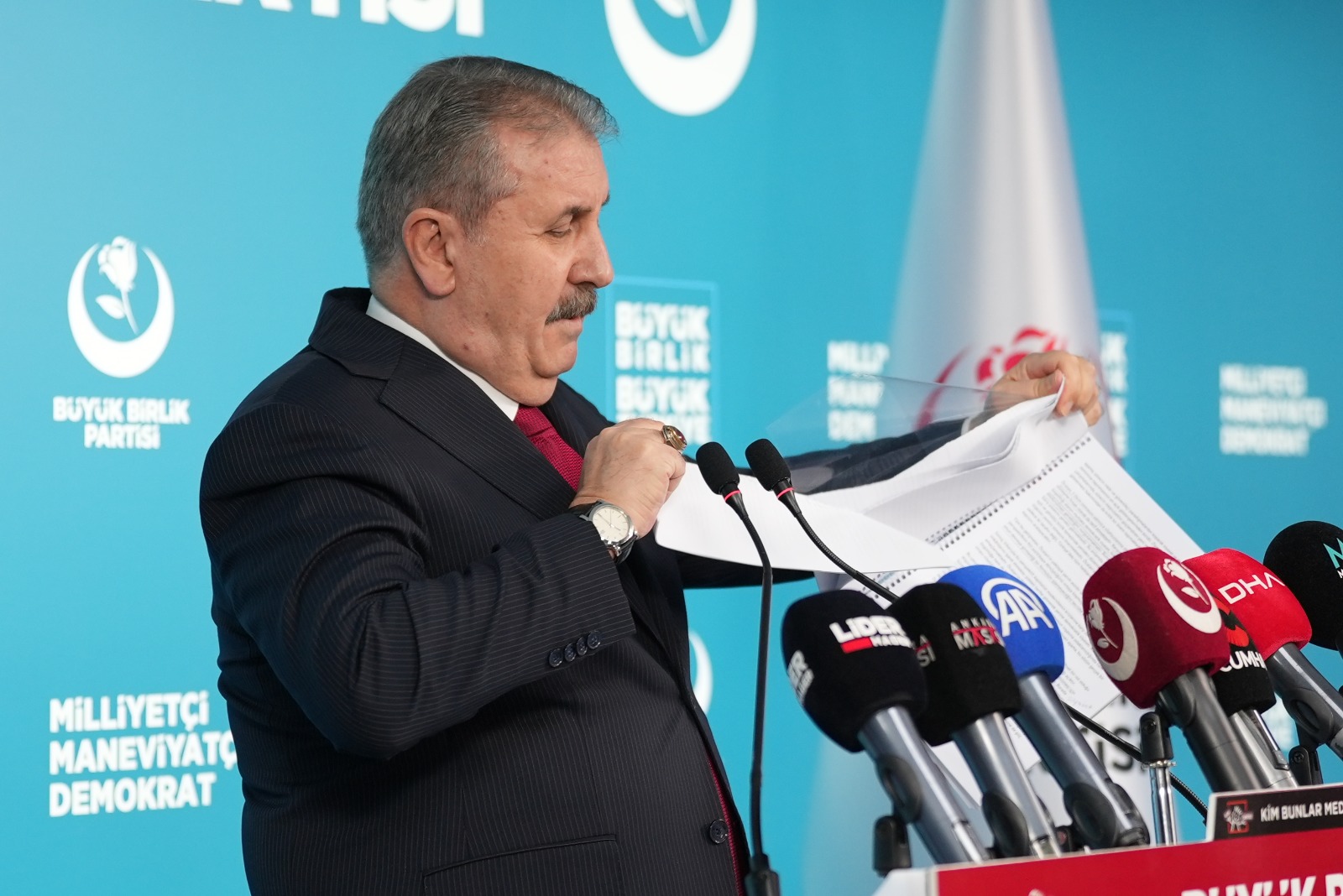 BBP Genel Başkanı Destici, konuşmasını “Türk Milleti’nin birliğine ve devletin bütünlüğüne yönelik hiçbir dayatmanın kabul edilmeyeceği” vurgusuyla tamamladı.