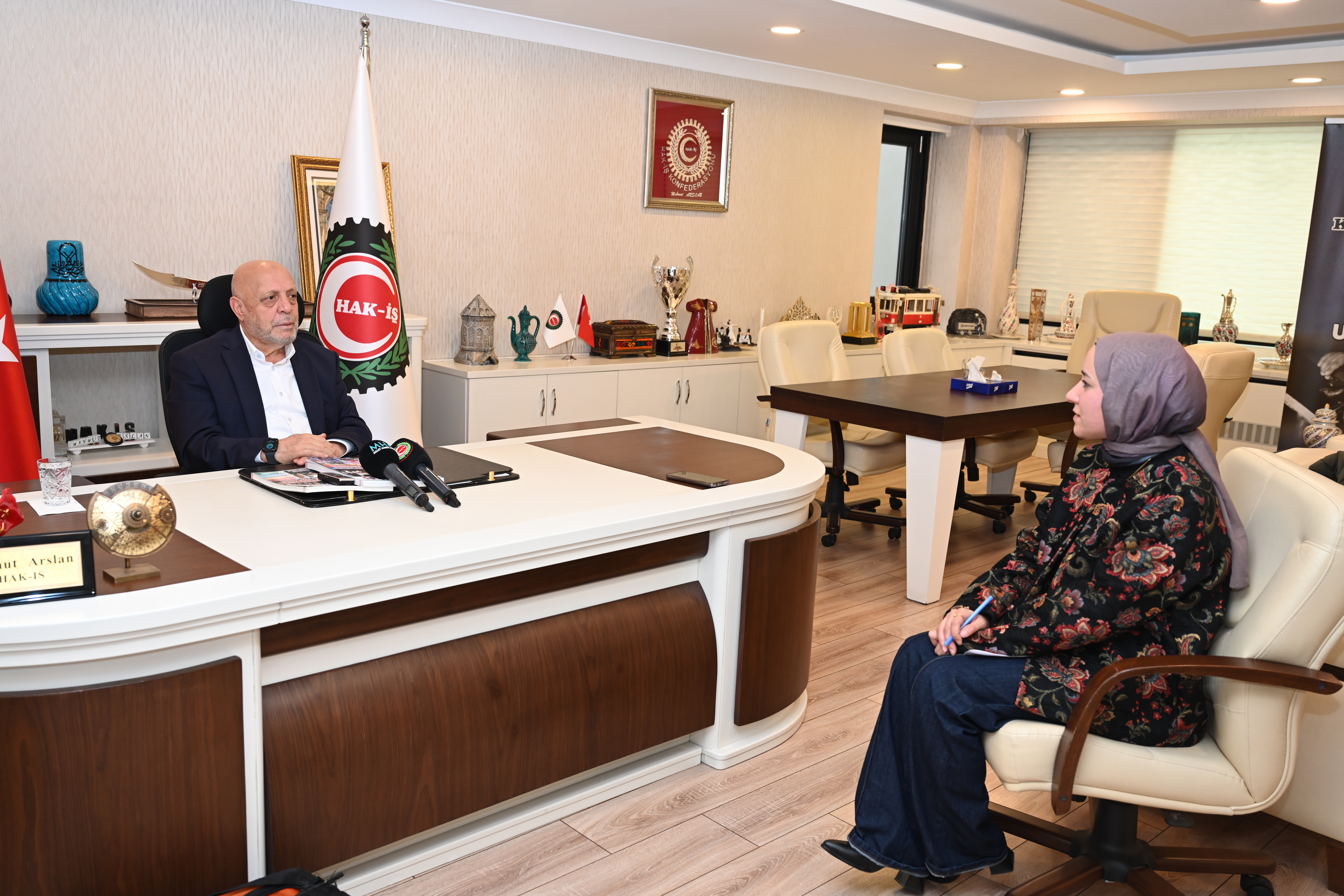 Hak-İş Genel Başkanı Mahmut Arslan, 2026 vizyonunu açıklayarak sendikalaşmanın önündeki engellerin kaldırılmasından emeklilik sisteminin yenilenmesine kadar çalışma hayatında kapsamlı reform çağrısında bulundu. Arslan, Türkiye’nin güçlenmesinin çalışanların gücü olduğunu vurguladı. Arslan, Filistin ve bölgesel barış çağrısını da yineledi.
