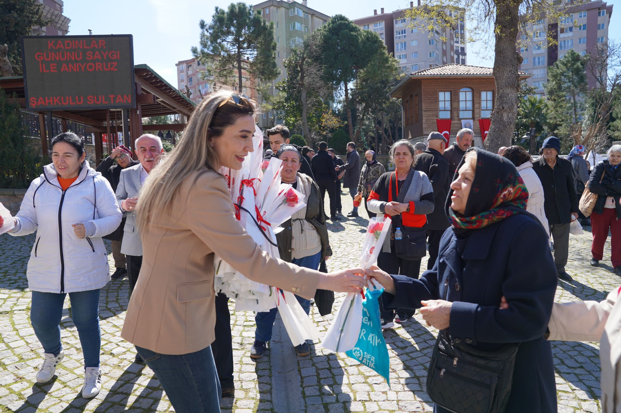 Kadınların toplumsal hayattaki emeğine ve yerine dikkat çekmek amacıyla gerçekleştirilen etkinlikte, programa katılan kadınlara Alevi-Bektaşi Kültür ve Cemevi Başkanı Esma Ersin tarafından kırmızı karanfiller takdim edildi.