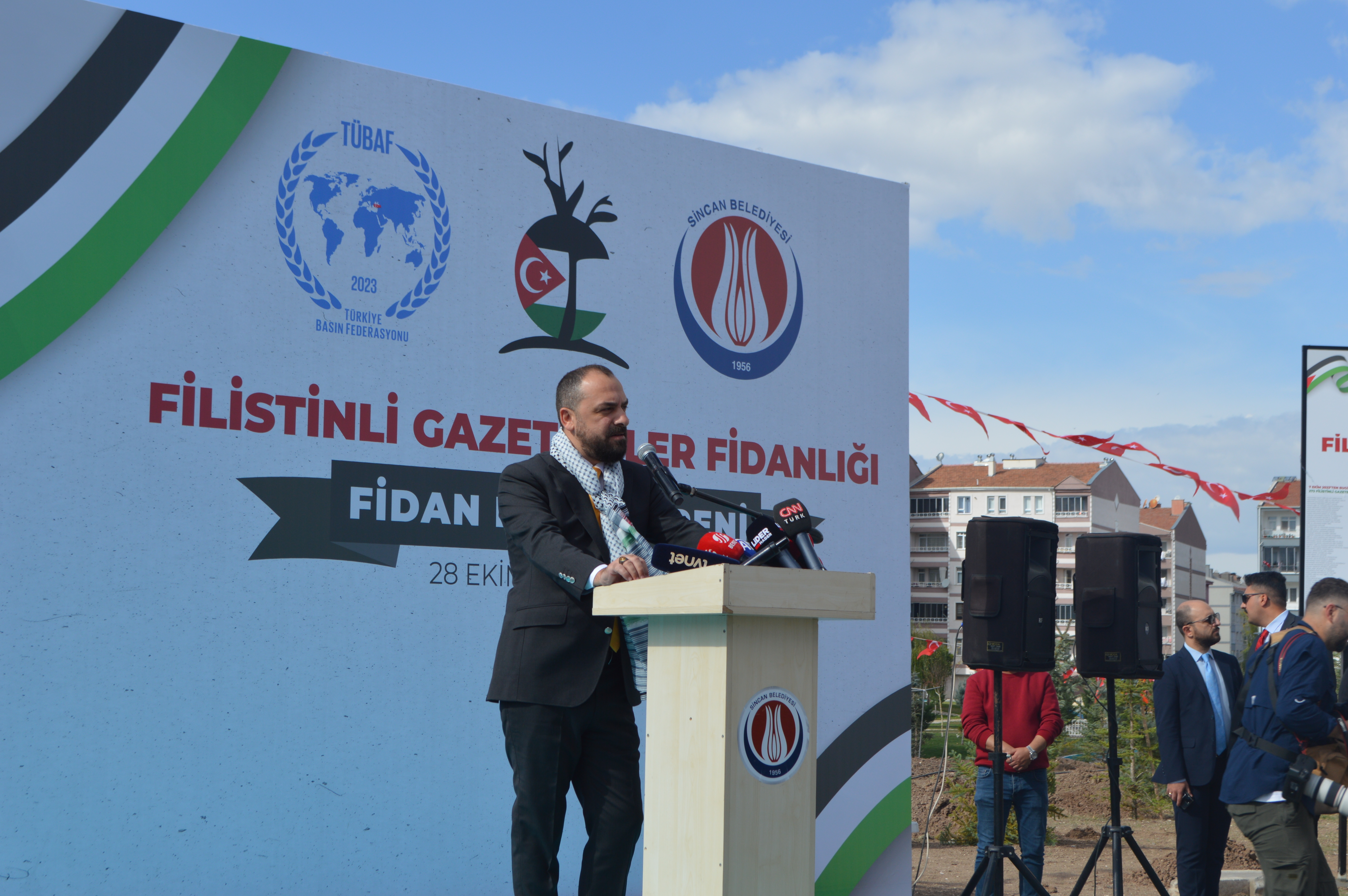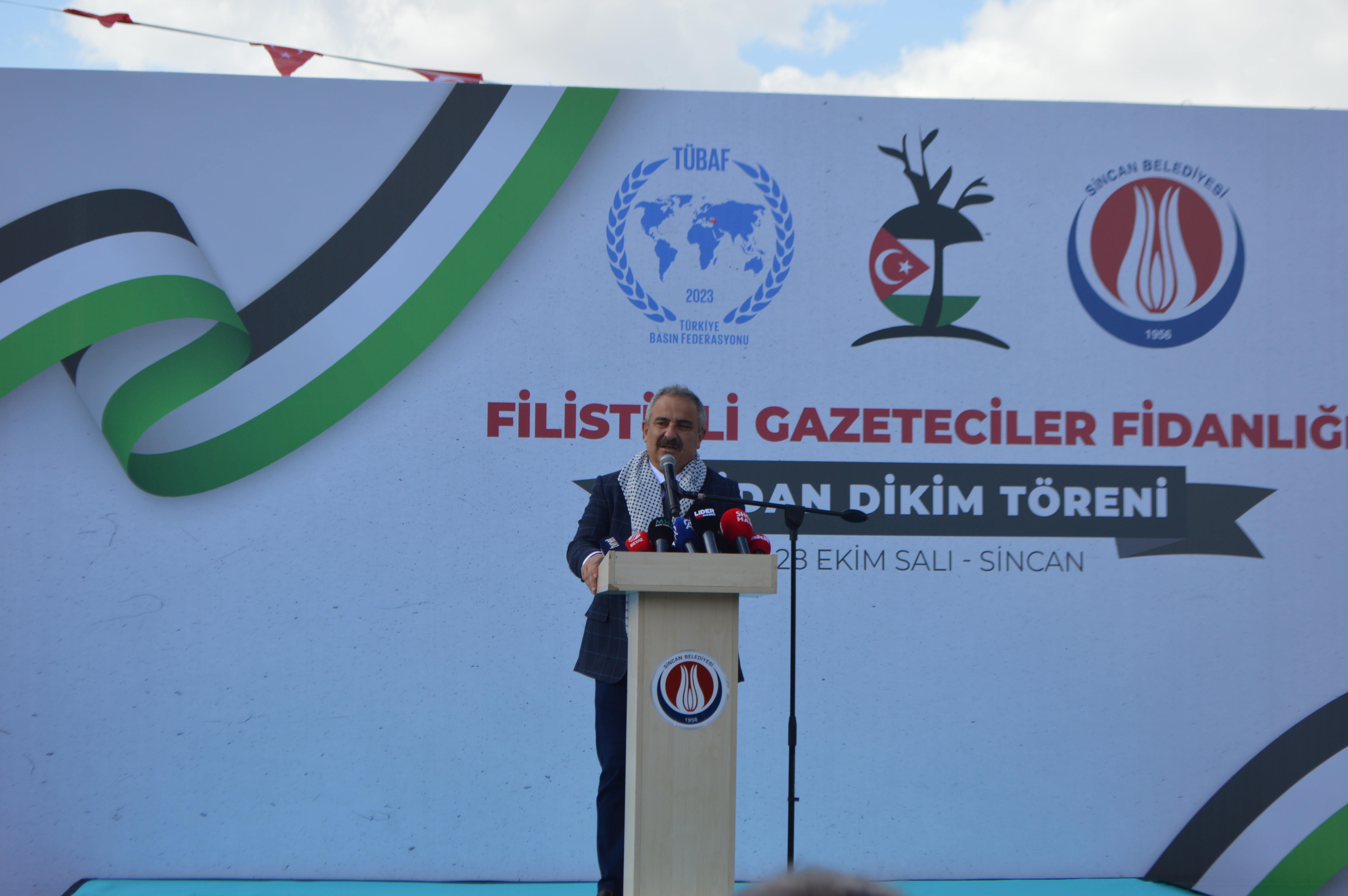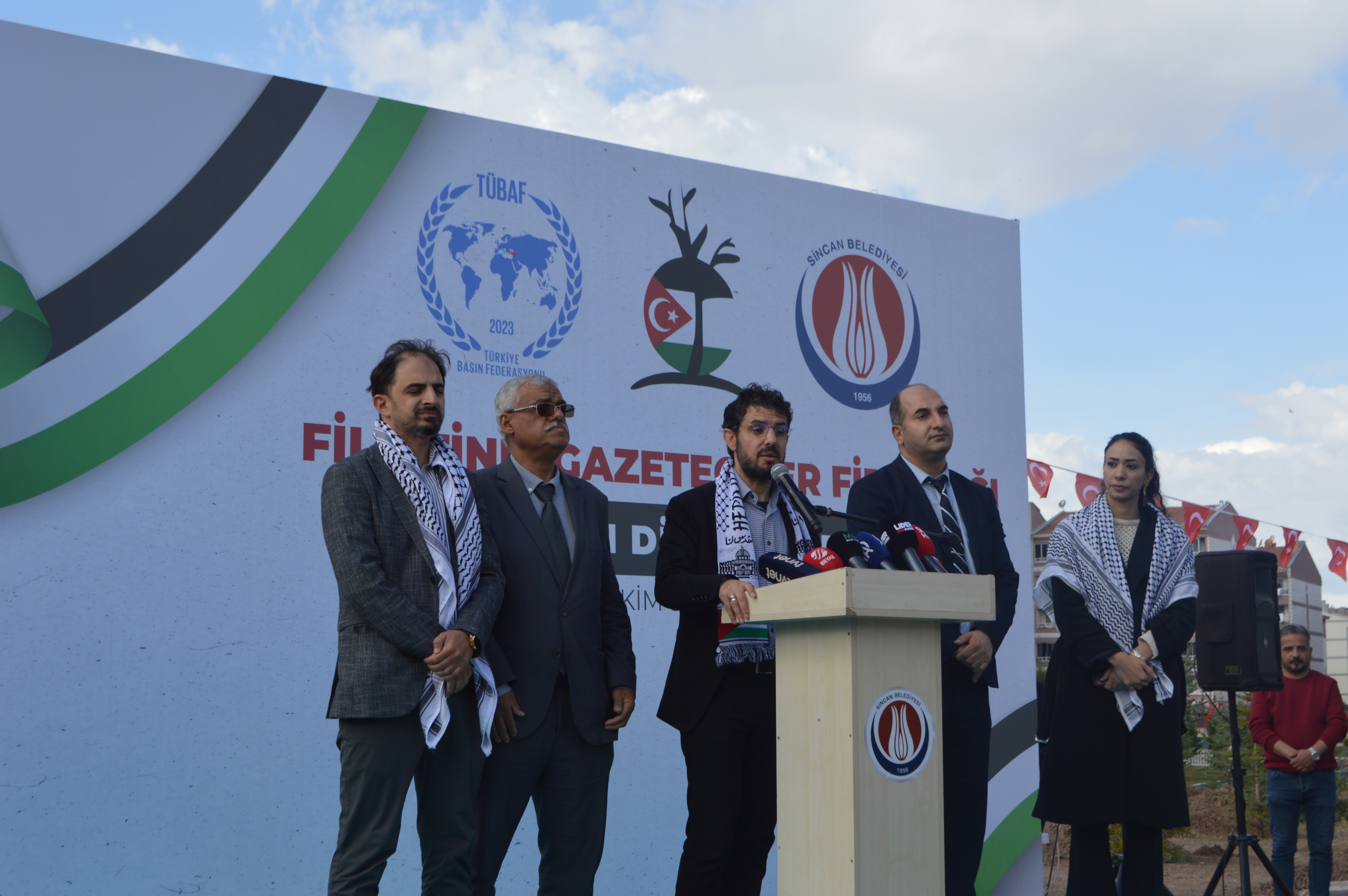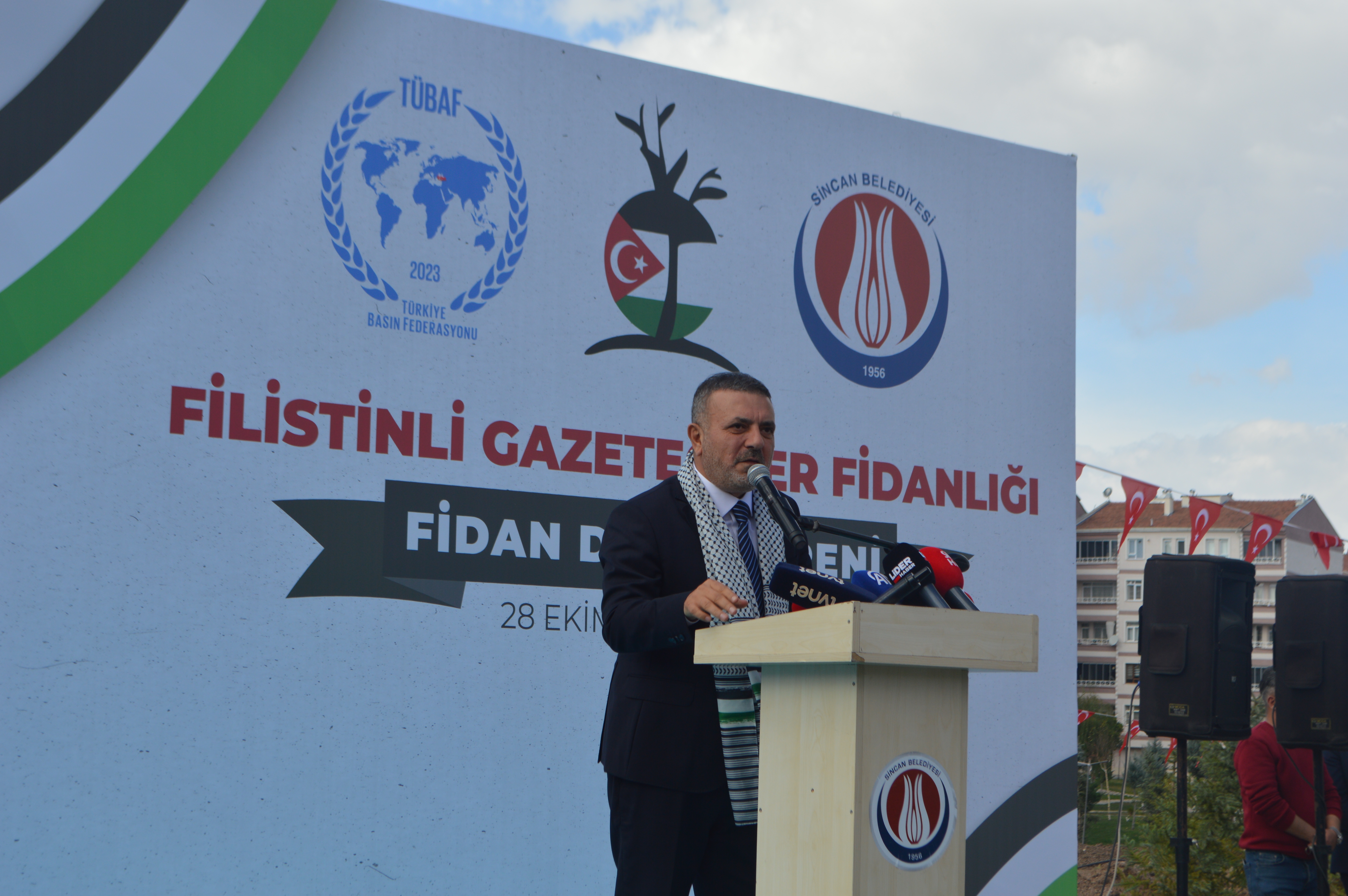 İsrail’in saldırılarında hayatını kaybeden Filistinli gazeteciler anısına düzenlenen fidan dikim töreninde konuşan Sincan Belediye Başkanı Murat Ercan ise Filistin davasının Türkiye’nin vicdanında her zaman canlı kalacağını vurguladı.